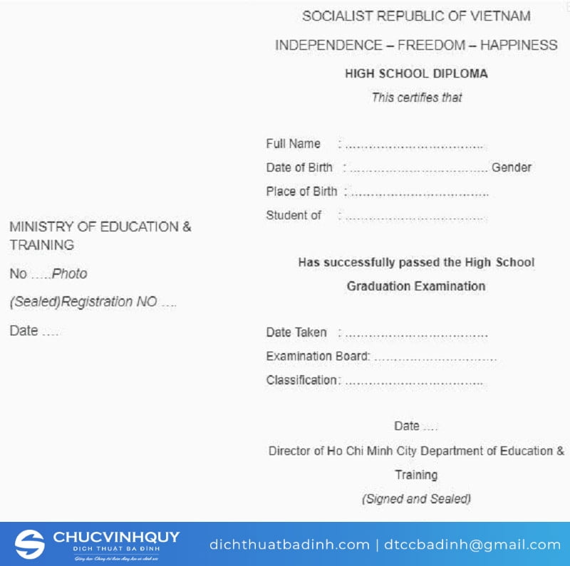 Mẫu dịch thuật bằng tốt nghiệp THPT sang Tiếng Anh được sử dụng rộng rãi nhằm giúp các bạn học sinh hoàn thiện hồ sơ du học. Dưới đây là một số mẫu dịch bằng cấp 3 sang Tiếng Anh mà các bạn có thể tham khảo: