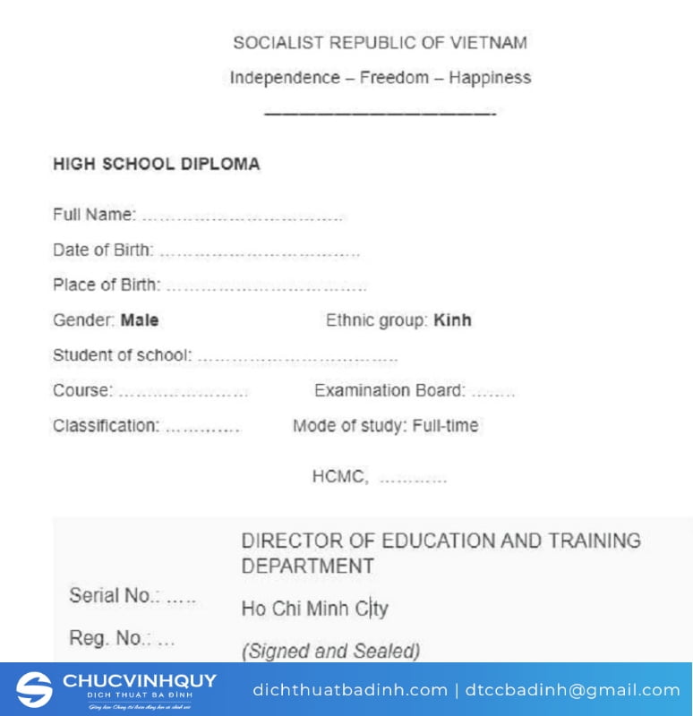 Dịch vụ dịch thuật bằng cấp 3 sang Tiếng Anh uy tín tại Hà Nội