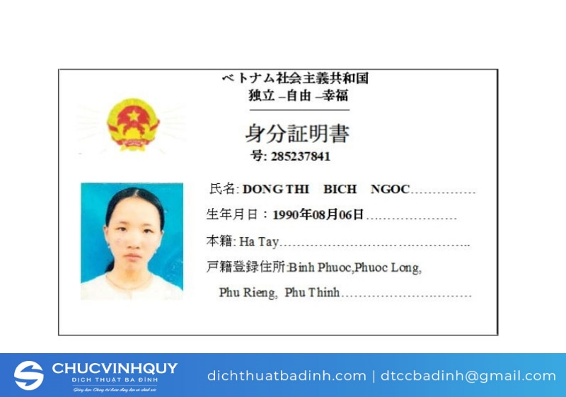 Mặt trước chứng minh thư dịch sang tiếng Nhật