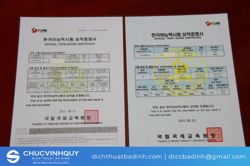 - Chứng chỉ tiếng Hàn hoặc tiếng Anh: TOPIK, IELTS,... để chứng minh trình độ tiếng Hàn hoặc tiếng Anh của bạn. Các loại chứng chỉ này đều cần bản gốc và bản sao công chứng.